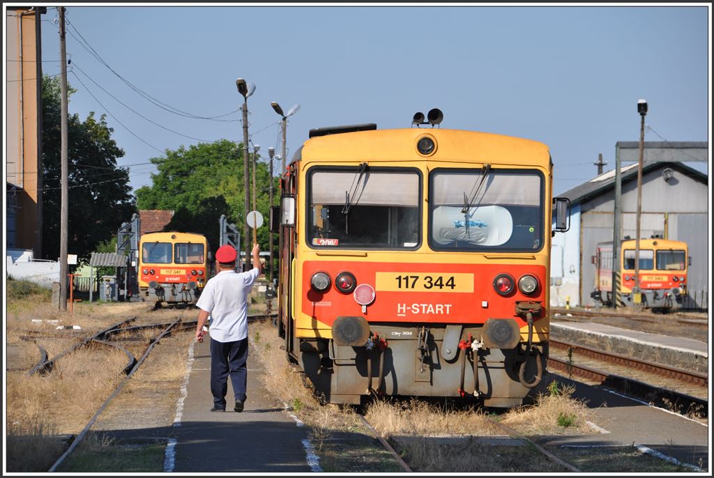 117 344 als letzter Zug des Tages nach Ipolytarnoc erhält den Abfahrbefehl. (04.07.2015)
