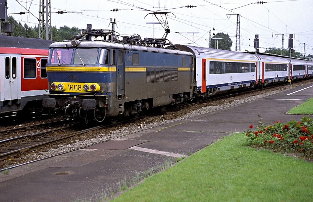 132020 fährt am 22.6.1991 um 9.51 Uhr mit dem E 850 nach Kassel durch den Haltepunkt Görsbach.