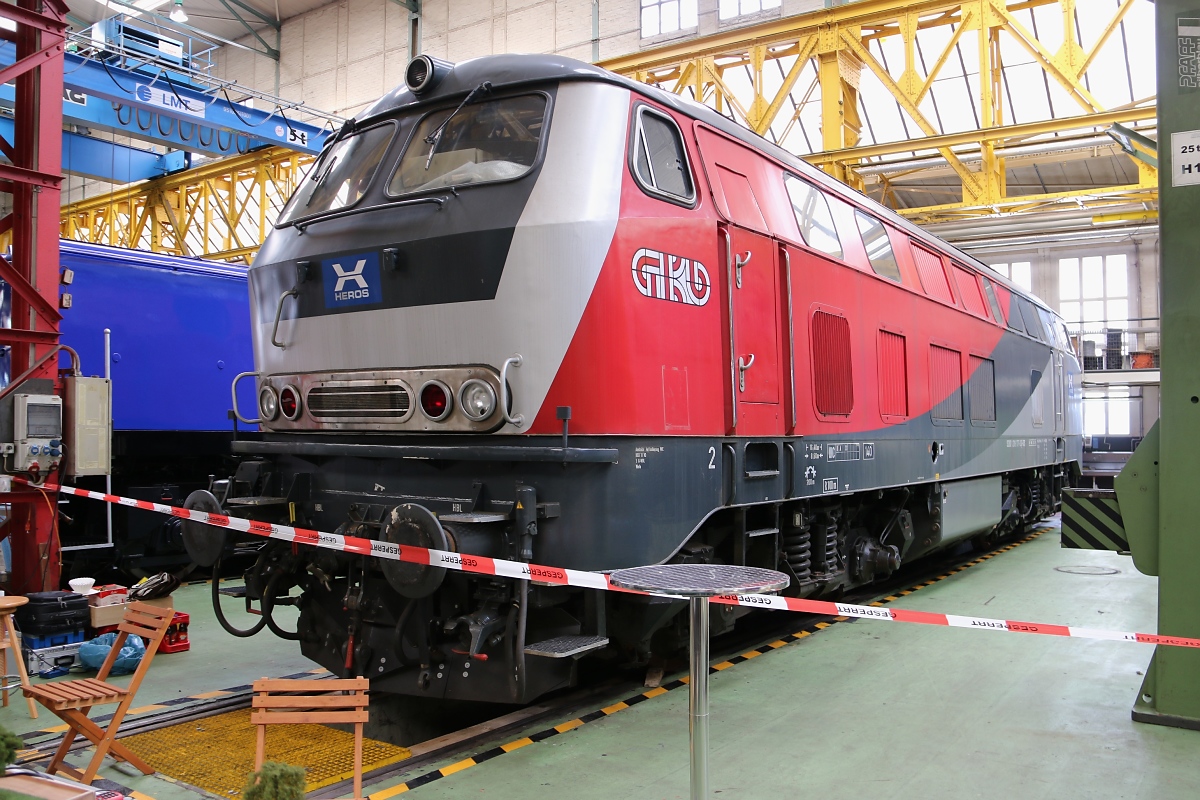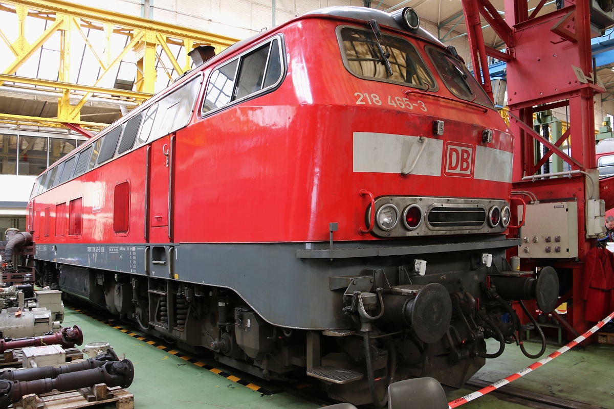 218 465-3 stand am 14.06.2014 im AW Bremen Sebaldsbrück. Aufgenommen am TdoT zum 100 jährigen Jubiläum.