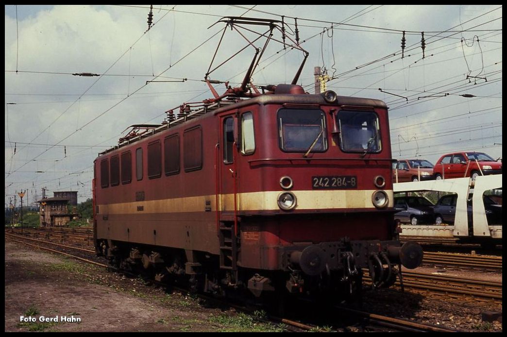242284 solo am 7.6.1991 im Bahnhof Glauchau.