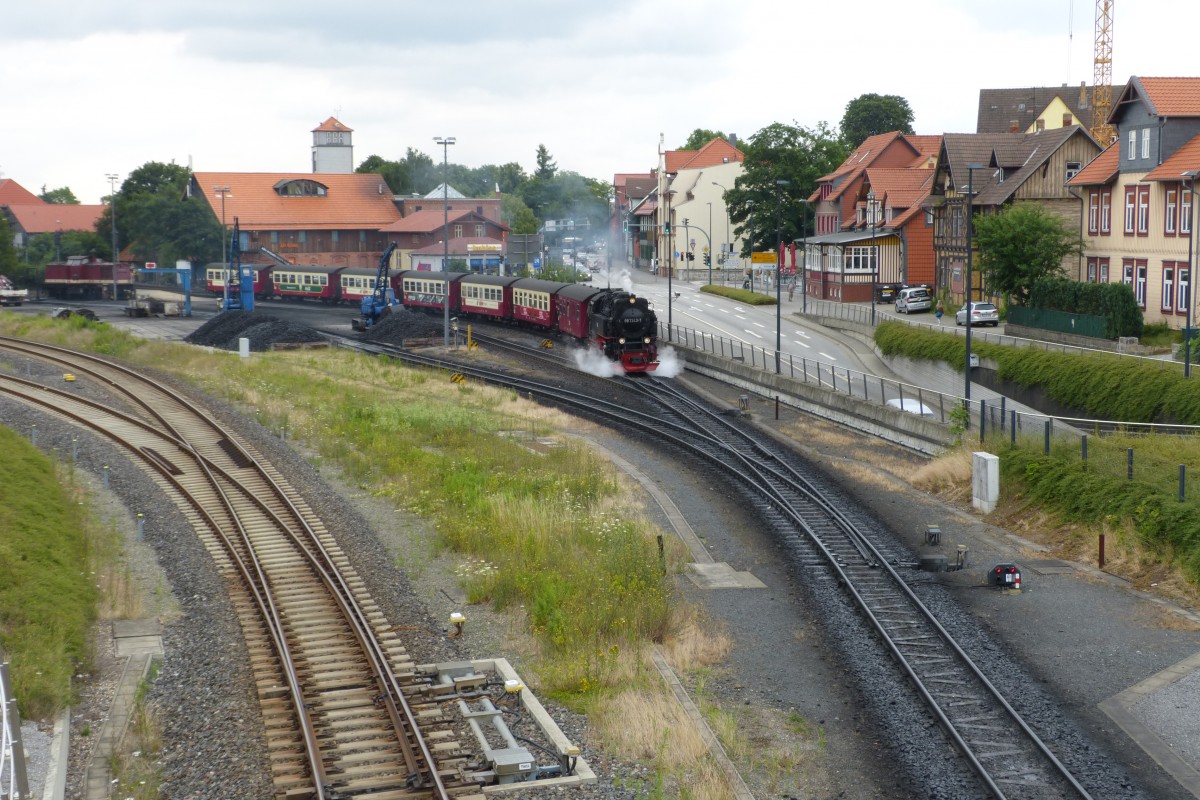 99 7234 bei der Ausfahrt Wernigerode Richtung Brocken am 13.7.15
