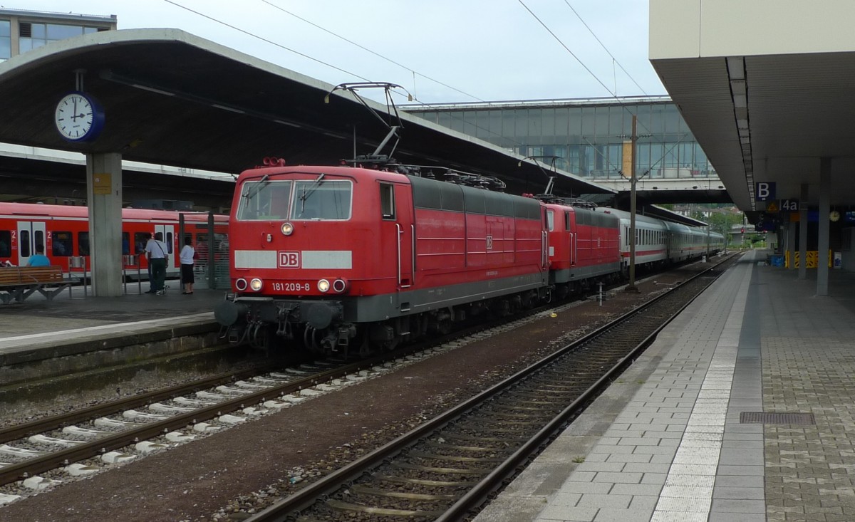 Elektro-Doppeltraktion im Reisezugverkehr ist in Europa ja selten geworden. Hier zwei 181 vor einem Intercity nach Saarbrücken am 4.8.2015 im Hauptbahnhof Heidelberg.