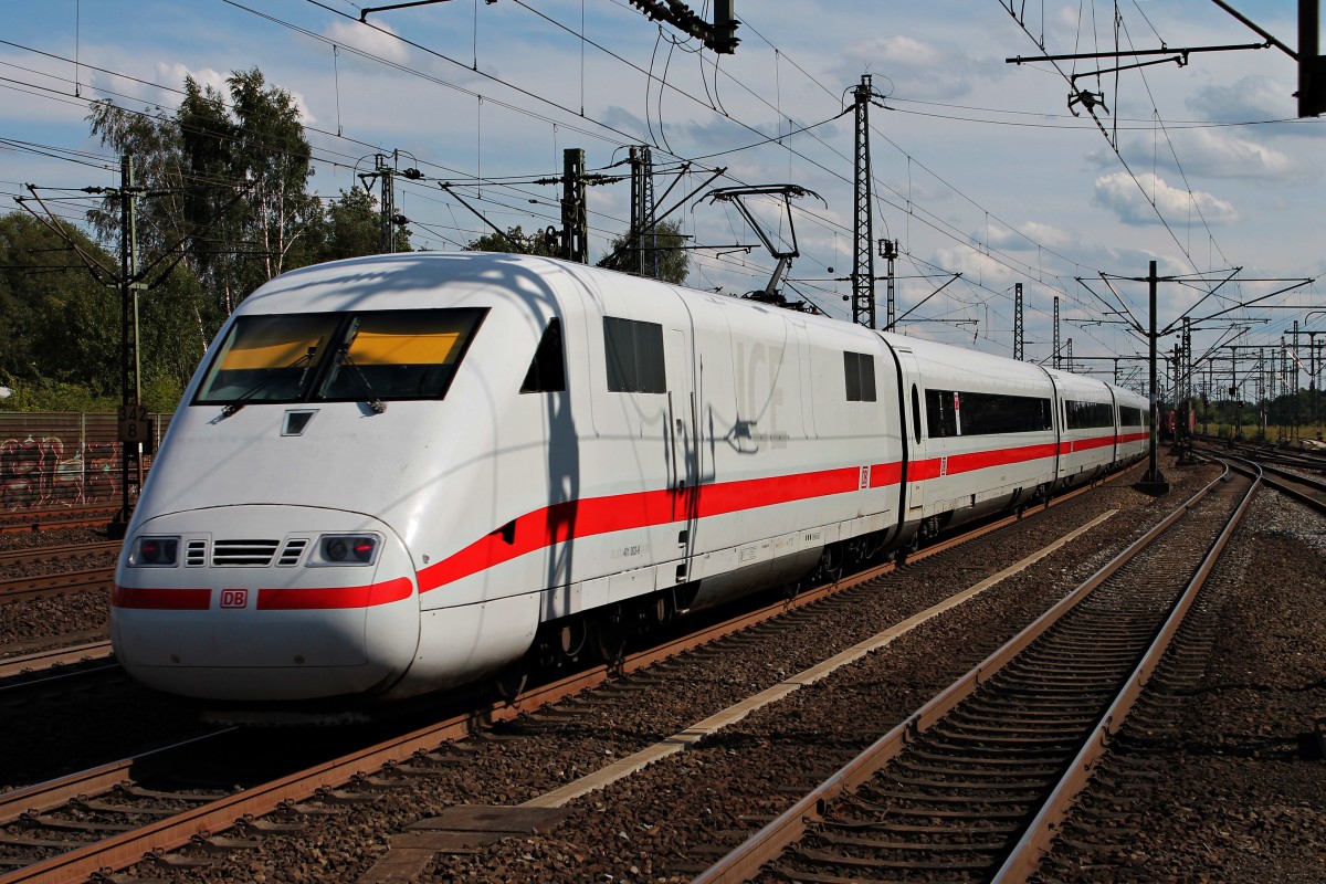 Früher hätte der Fotograf inmitten einer Gleisharfe des geschäftigen Güterbahnhofs Hamburg-Altona gestanden. Heute kann man die Fahrt eines ICE Richtung Hauptbahnhof über die einzige(!) Ausfahrtrampe in Ruhe beobachten. 9.8.2015