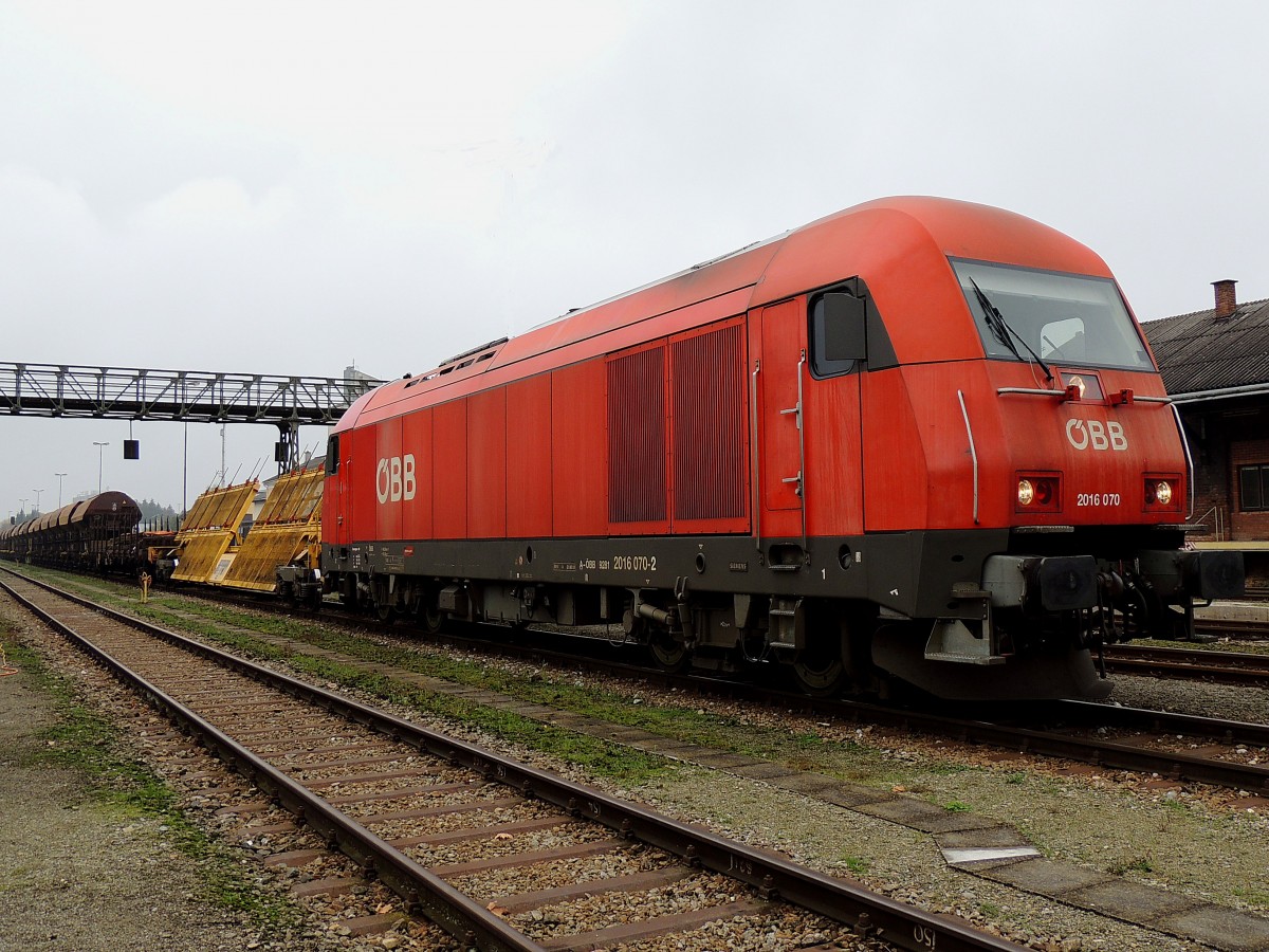 2016 070-2 darf die nicht mehr benötigten Wagen bzgl. einer Bahnbaustelle bei Ried abtransportieren; 151019