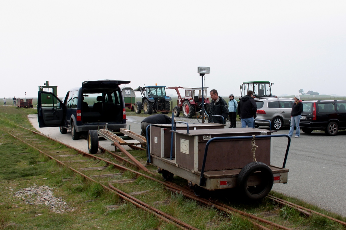 Am 07.06.2012 wurde Lore 40 im Halligbf Langeness soeben eingegleist. Wie diese Bahnanlage zu bezeichnen ist, darüber sind sich selbst die Halliglüüd nicht einig, bei Nachfrage werden auch Lorenplatz, Lorenbf oder einfach nur Bf genannt. Solche Probleme haben auch nur Landratten.