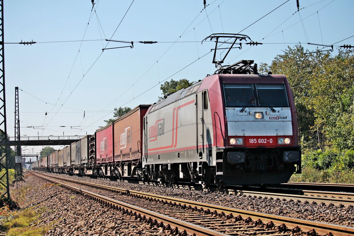 185 602-0 am 27.09.2014 mit einem Containerzug in Orschweier gen Offenburg.