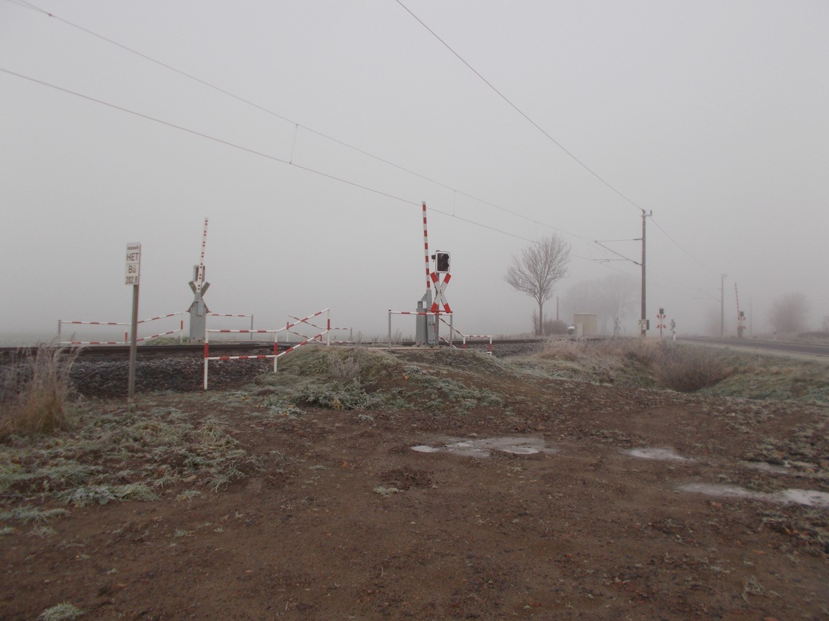 Nach dem 076 109 der Raildox am Morgen des 03.12.15 mit einem Schwenkdachwagenzug Greppin bereits Richtung Bitterfeld passierte, war sie am Nachmittag des selben Tages ohne Zug auf dem Rückweg Richtung Dessau.