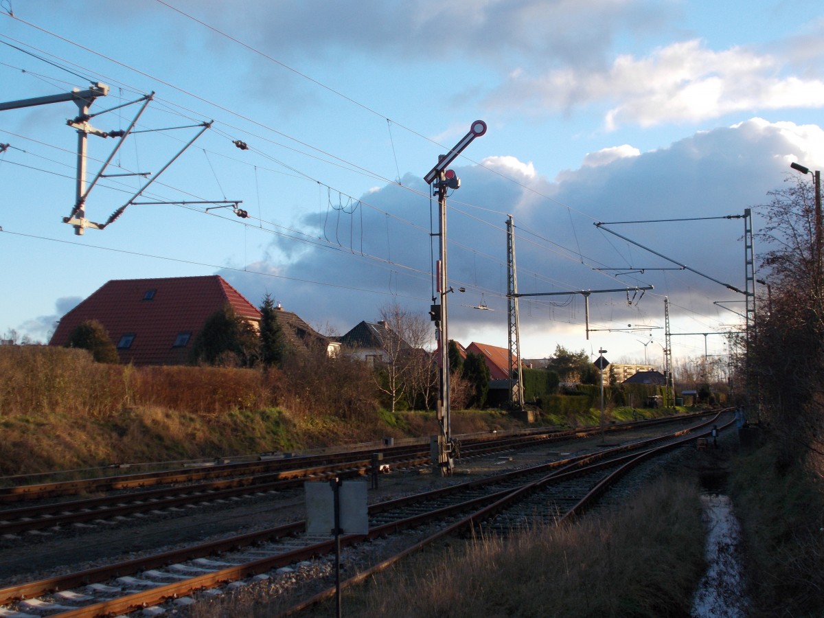 Die Gleise der Remsbahn im Licht der Dezember-Abendsonne -