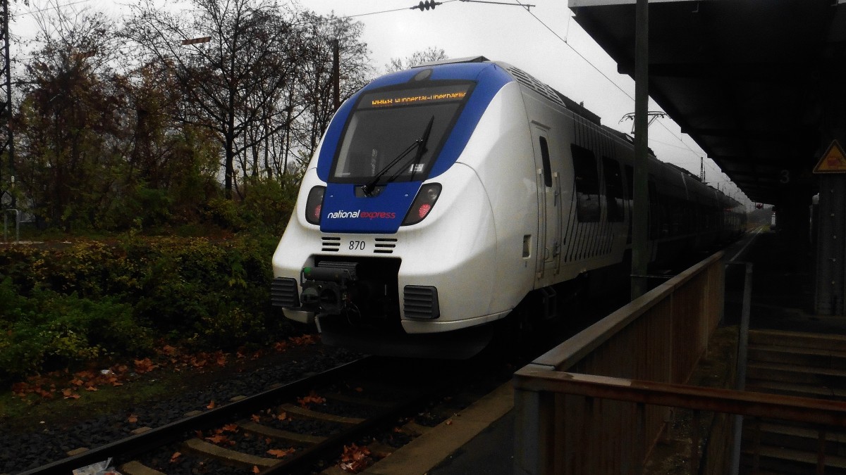 Die 442 870 der National Express bei der Ankunft in Bonn-Mehlem ( Standort ist der Bahsteig) , DEN 13.12.2015