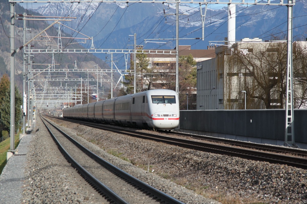 Mit dem Fahrplanwechsel kommen nach einigen Jahren wieder ICE Züge von Hamburg und Frankfurt/M nach Chur.Im Bild ein ICE bei Chur-Wiesental.15.12.15
