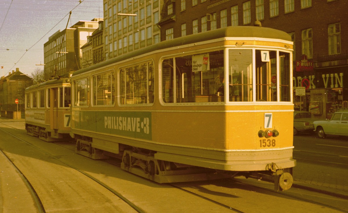 København / Kopenhagen SL 7 (Bw 1538) Nørre Voldgade / Frederiksborggade / Nørreport station im November 1967. - Scan von einem Farbnegativ. Film: Kodacolor X. Kamera: Konica EE-matic.