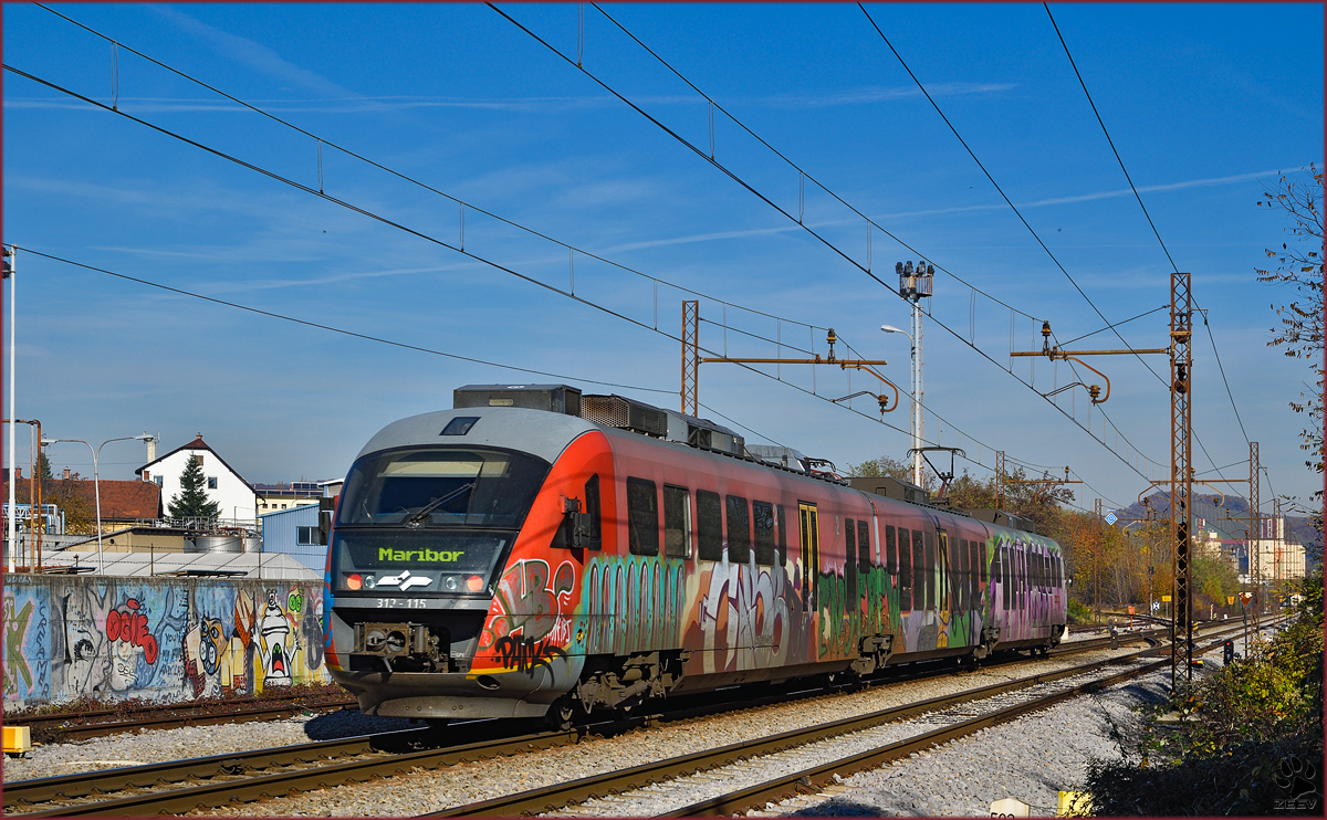SŽ 312-115 fährt durch Maribor-Tabor Richtung Maribor HBF. /6.11.2015