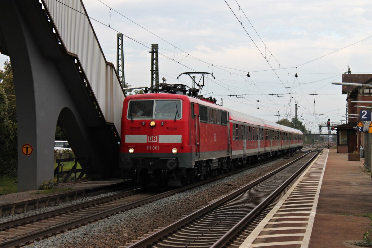 Am 29.09.2014 legte die 111 061 einen kurzen Halt in Orschweier mit einer RB (Offenburg - Schliengen) ein.