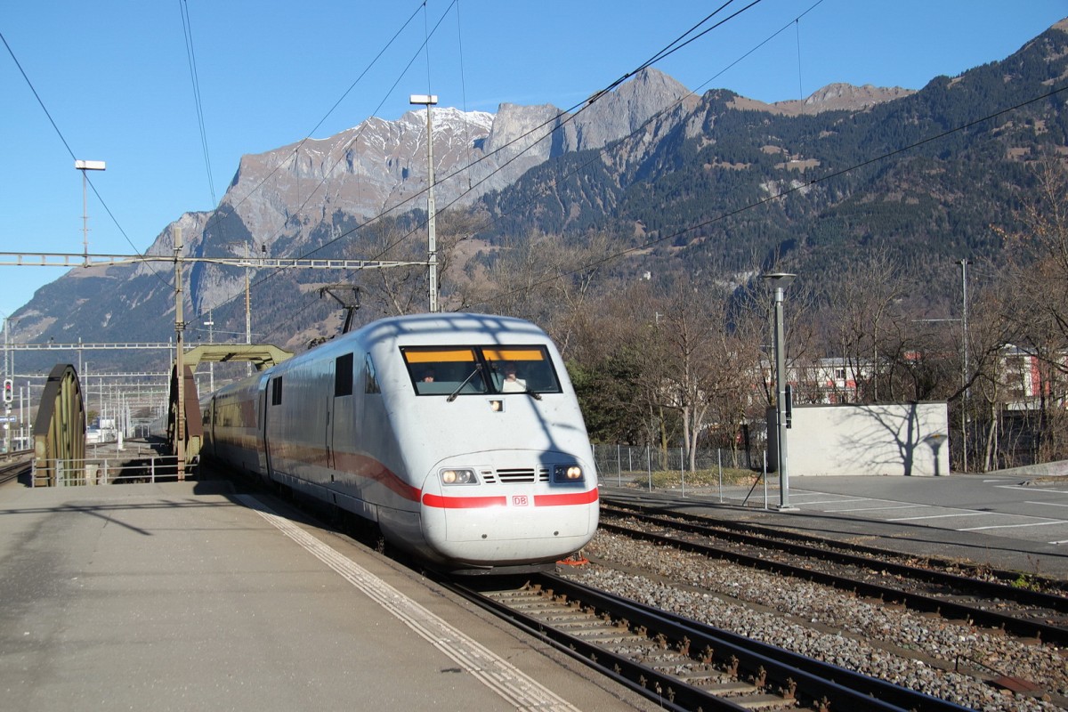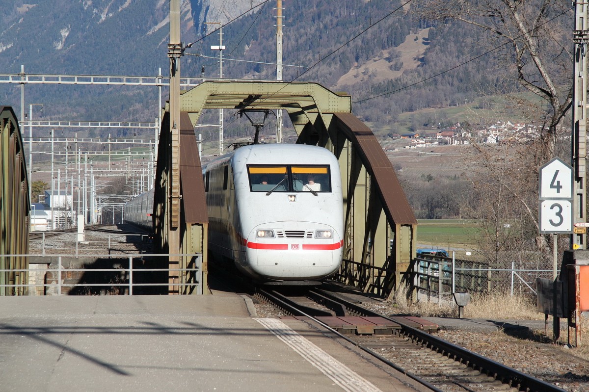 ICE von Frankfurt/M nach Chur bei der Einfahrt in den Bahnhof Landquart.28.12.15