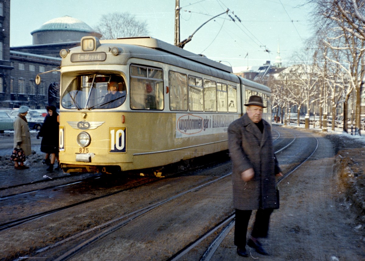 København / Kopenhagen Københavns Sporveje SL 16 (Tw 568) Emdrupvej (Endstation) im Dezember 1967. - Scan von einem Farbnegativ. Film: Kodacolor X. Kamera: Konica EE-matic.