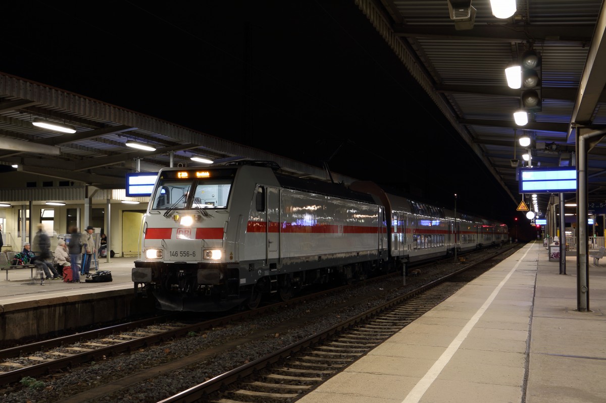 Mit diversen Störungen und Verspätungen sind die Doppelstock-IC auf der Linie zwischen Leipzig und Ostfriesland angekommen. Meine geplante Fahrt am 21.12. ist leider ausgefallen und auch der hier gezeigte IC 2034 mit 146 556-6 als Zuglok nach Norddeich hatte in Magdeburg Hbf bei der Abfahrt etwa 15 Minuten Verspätung. Fotografiert am 27.12.2015.