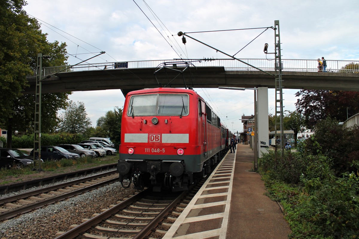 Zwischenhalt am 29.09.2014 von der Freiburger 111 048-5 mit einer RB (Schliengen - Offenburg) in Orschweier.