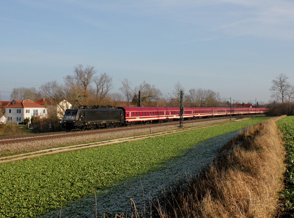 193 208-6 ELL - European Locomotive Leasing für Lokomotion Gesellschaft für Schienentraktion mbH mit dem AKE-RHEINGOLD von Koblenz Hbf mit den Zielen Berlin, Dresden und Leipzig, bei der Durchfahrt in Großwudicke. 29.12.2015