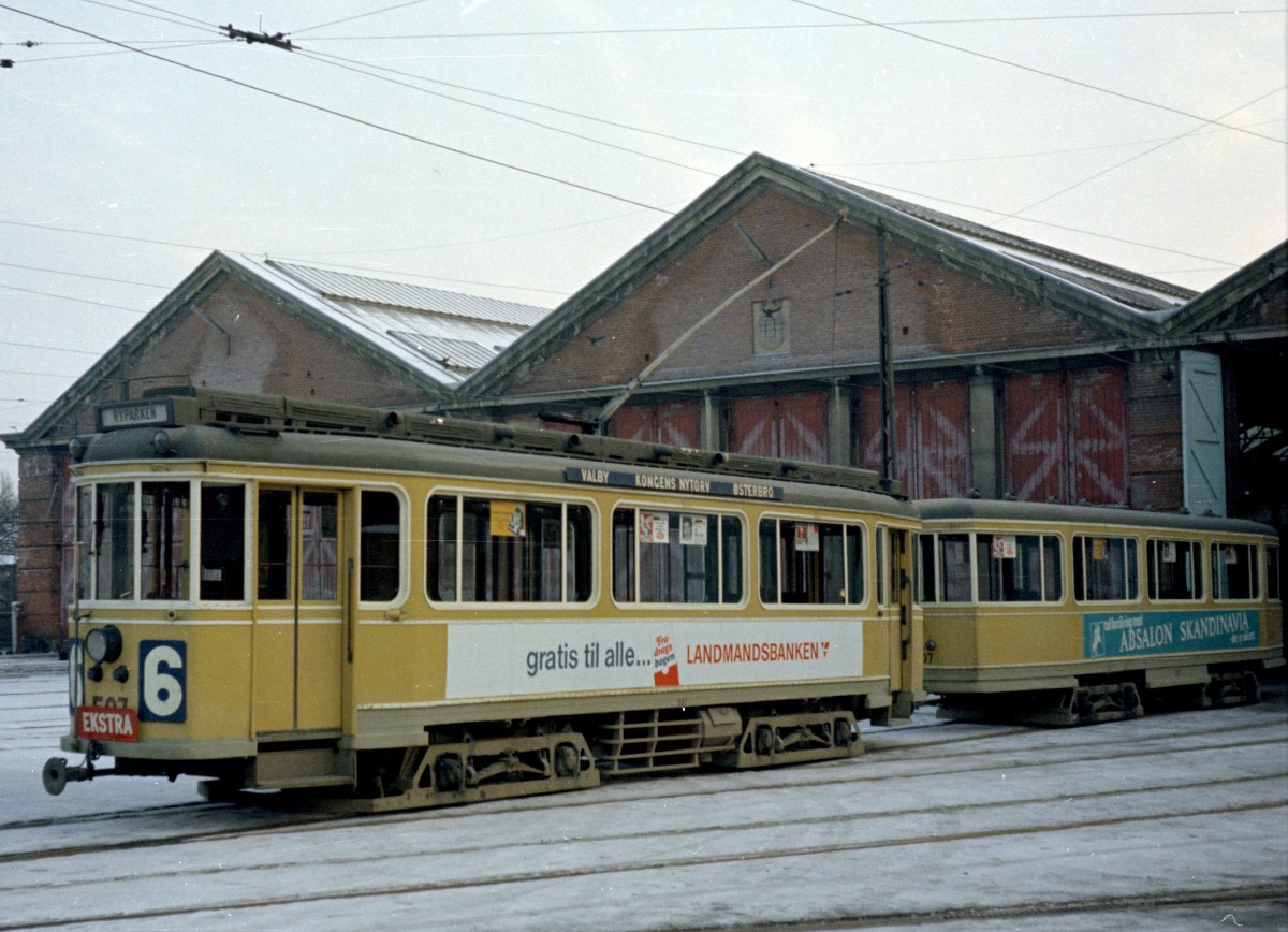 København / Kopenhagen Københavns Sporveje SL 6 (Tw 587 + Bw 1507) Betriebshof Svanemøllen im Dezember 1968. - Scan von einem Farbnegativ. Film: Kodacolor X.