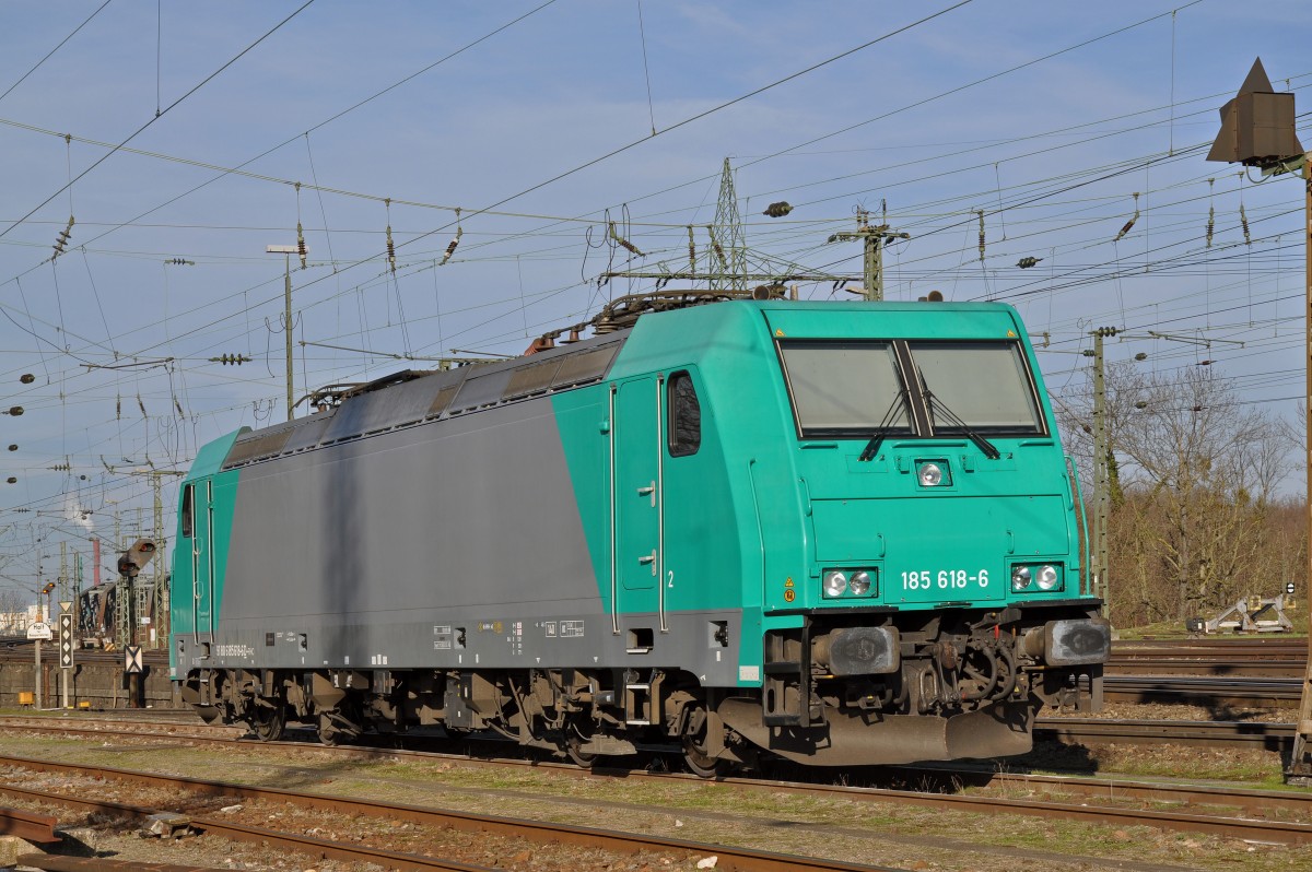 Lok 185 618-6 ist beim Badischen Bahnhof abgestellt. Die Aufnahme stammt vom 20.12.2015.