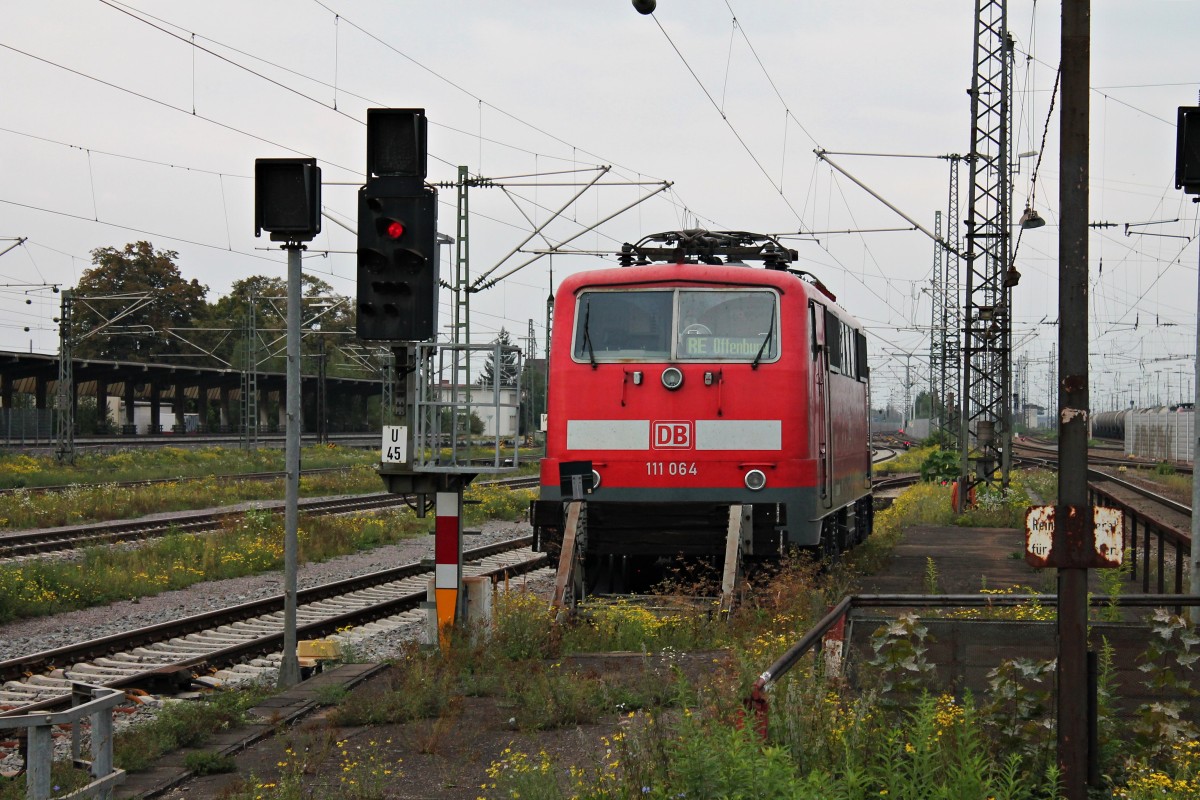 Am 13.09.2014 stand 111 001-4 mit ihren TEE Wagen abgestellt auf Gleis 2 (Durchfahrtsgleis) in Triberg.