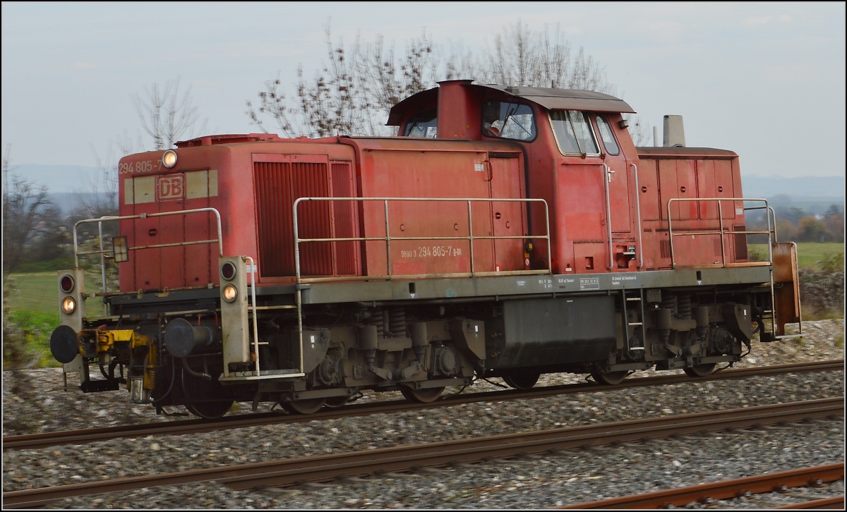 Alleine dieselt 294 805-7 in Welschingen vorbei. November 2015. (Ersatz für das skalierungsgeschädigte Bild)