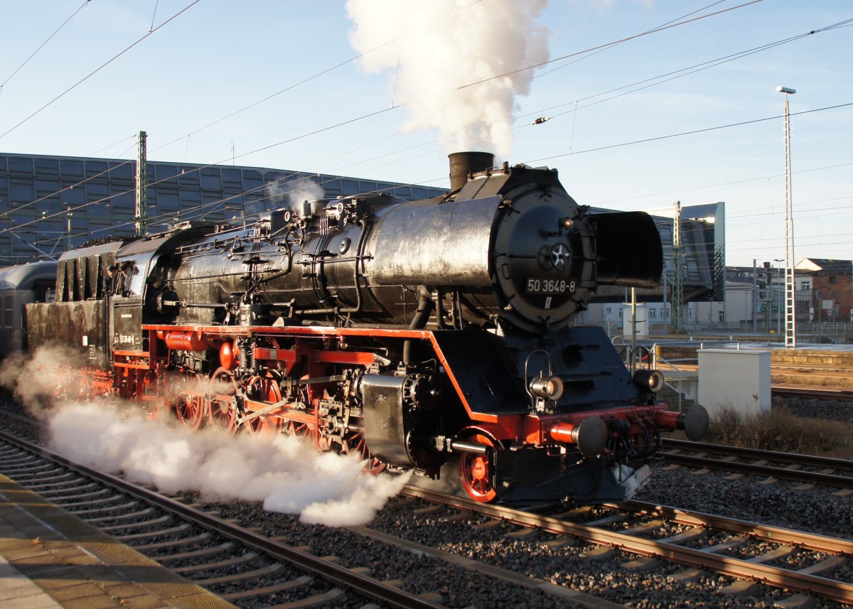 50 3648-8, 20.12.2015, Hbf. Chemnitz; Sonderzug zur Bergparade von Dresden nach Annaberg. Ab Chemnitz übernimmt 50 3648, von Dresden bis Chemnitz fungierte E 7710 als Zuglok.