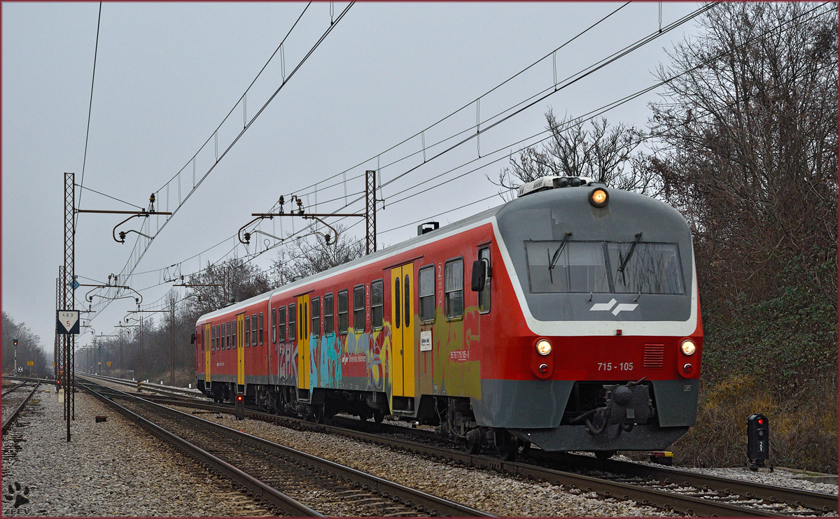 SŽ 715-105 fährt durch Maribor-Tabor Richtung Murska Sobota. /21.12.2015