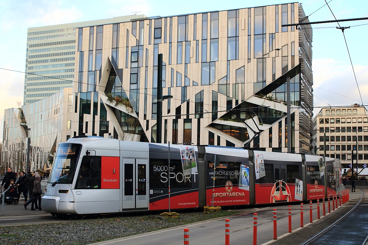 Am 28.11.2015 fährt der NF8U 3360 am Kö-Bogen vorbei in Richtung Heinrich-Heine-Allee. Die Aufnahme entstand ungefähr vom gleichen Standpunkt wie das Bild des GT8S 3053.