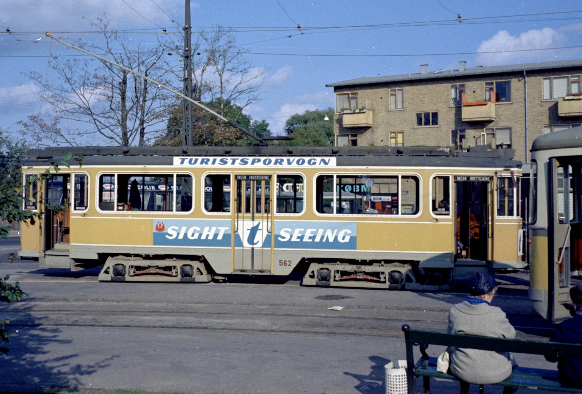København / Kopenhagen Københavns Sporveje: SL T (Tw 562) Nørre Voldgade am 24. September 1967. Nachdem die letzte Fahrt der Touristenstraßenbahnlinie durchgeführt worden war und die meisten Fahrgäste in der Studiestræde ausgestiegen waren, fuhr der Tw 562 zum Betriebshof Nørrebro zurück. Als Fahrgäste auf dieser Betriebsfahrt fuhren einige Straßenbahnfotografen, die als Zugabe ein paar Fotohälte unterwegs zum Betriebshof erhielten. -  Scan von einem Farbnegativ. Film: Kodacolor X. Kamera: Konica EE-matic.