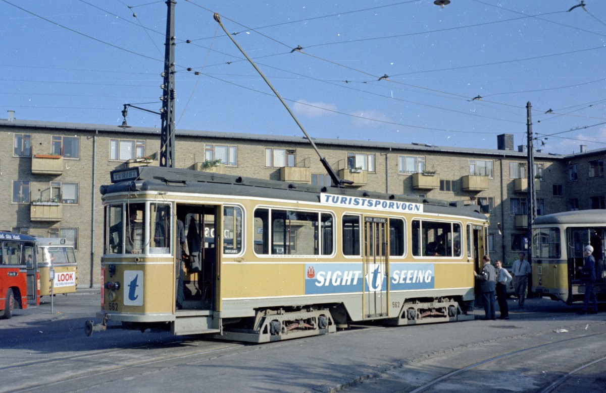 København / Kopenhagen Københavns Sporveje: SL T (Tw 562) Nørre Voldgade am 24. September 1967. Nachdem die letzte Fahrt der Touristenstraßenbahnlinie durchgeführt worden war und die meisten Fahrgäste in der Studiestræde ausgestiegen waren, fuhr der Tw 562 zum Betriebshof Nørrebro zurück. Als Fahrgäste auf dieser Betriebsfahrt fuhren einige Straßenbahnfotografen, die als Zugabe ein paar Fotohälte unterwegs zum Betriebshof erhielten. - Scan von einem Farbnegativ. Film: Kodacolor X. Kamera: Konica EE-matic.