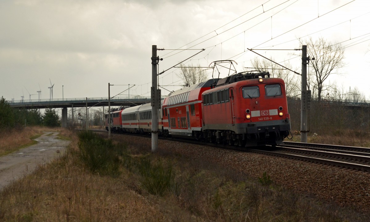 140 539 oblag am 03.02.15 die Bespannung des PbZ 2466 von Leipzig nach Berlin. Mit den Wagenloks 115 261 und 115 509 durchfährt sie Petersroda Richtung Dessau.