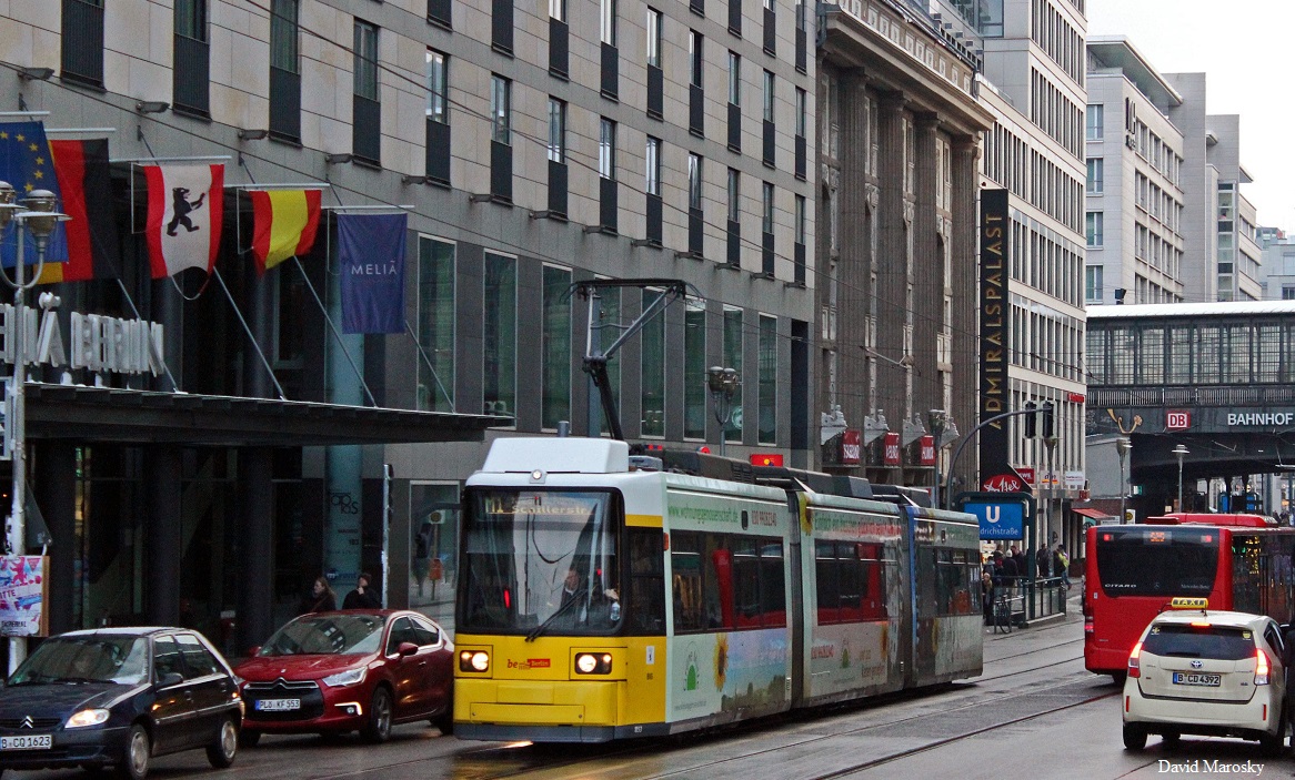 Ein GT6N der BVG am 31.01.2015 in Berlin, (U) Bahnhof Friedrichstraße.