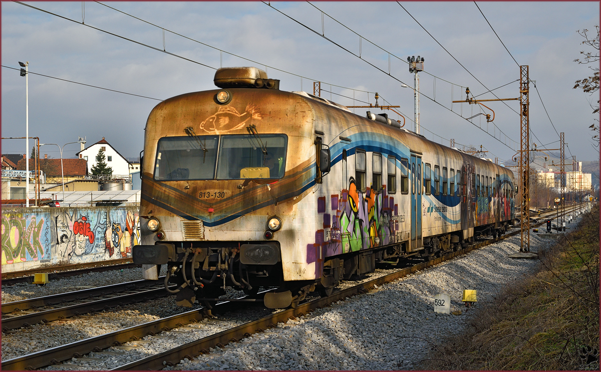 SŽ 813-130 fährt durch Maribor-Tabor Richtung Ormož. /19.1.2015