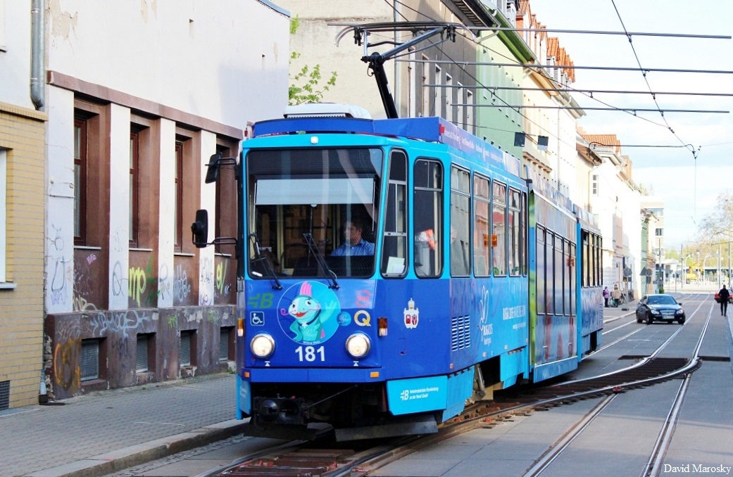 TW 181 der VBBr (Tatra KTNF6) in Brandenburg, Blumenstraße. 16.04.2014