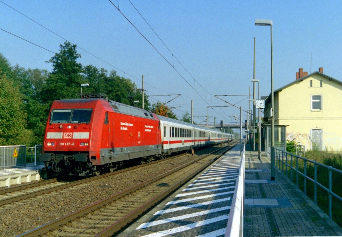 101 137 mit EC 178 (Praha hl.n.–Westerland [Sylt]) am 08.10.2005 in Pritzier