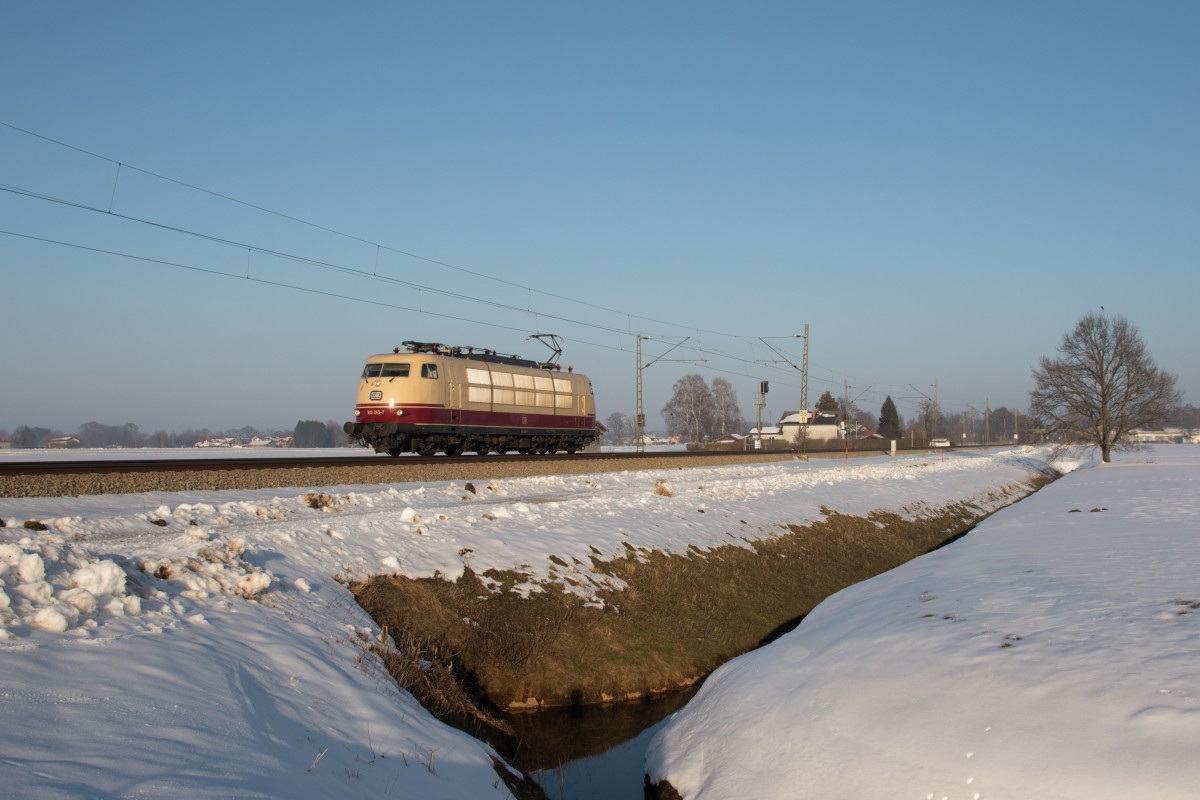 103 245 auf der Rückfahrt nach München, Übersee am 13. Februar 2015.