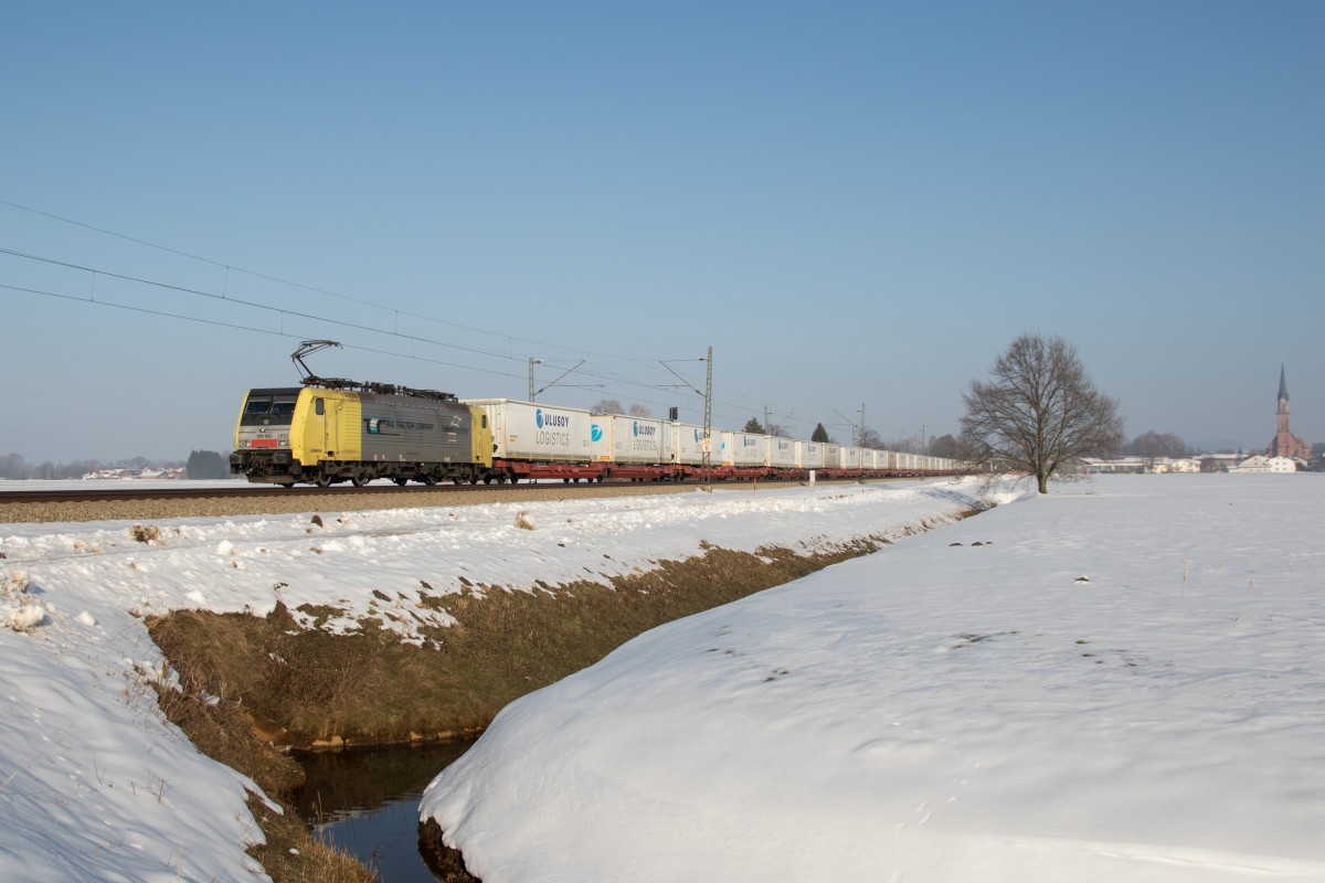 189 903 mit dem ULUSOY-KLV am 13. Februar 2015 bei Übersee.