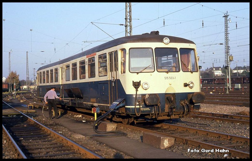 Am 25.10.1989 um 16.03 Uhr wurde der Akku Triebwagen 515503 im Bahnhof Düren neu  aufgetankt  und zu diesem Zweck an die Stromversorgung angeschlossen.