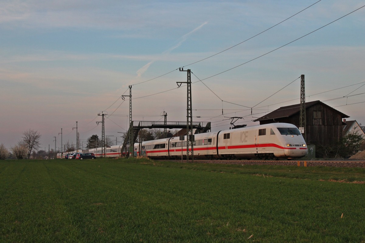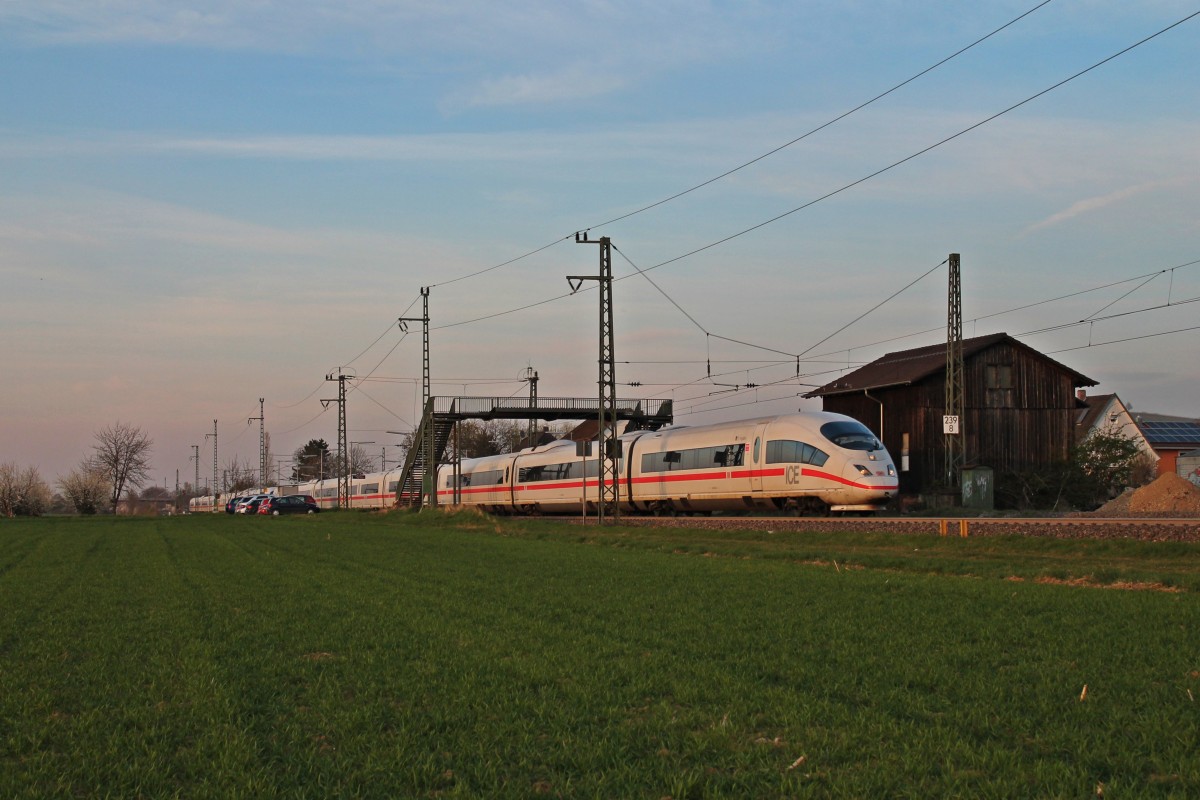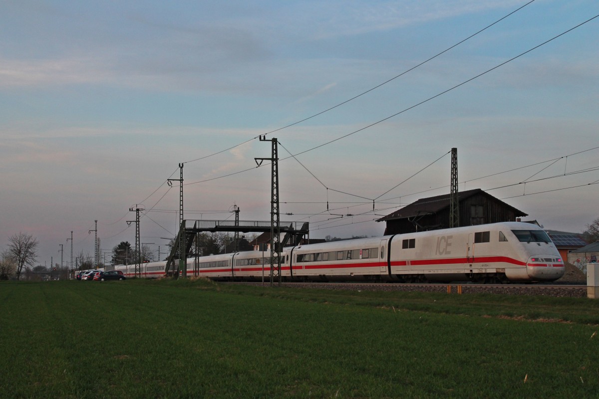 Durchfahrt am 29.03.2014 von 403 558-0  St.Ingbert  zusammen mit 403 522-6  Solingen  als ICE 109 (Dortmund Hbf - Basel SBB) im Hp Auggen seinem Ziel entgegen.