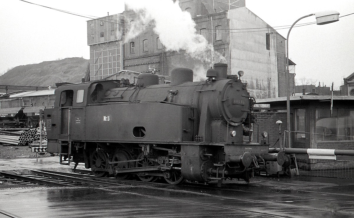 Anna Nr. 6 (Krupp 2188/1940) im Frühjahr 1979 am Bahnübergang Herzogenrather Straße in Alsdorf