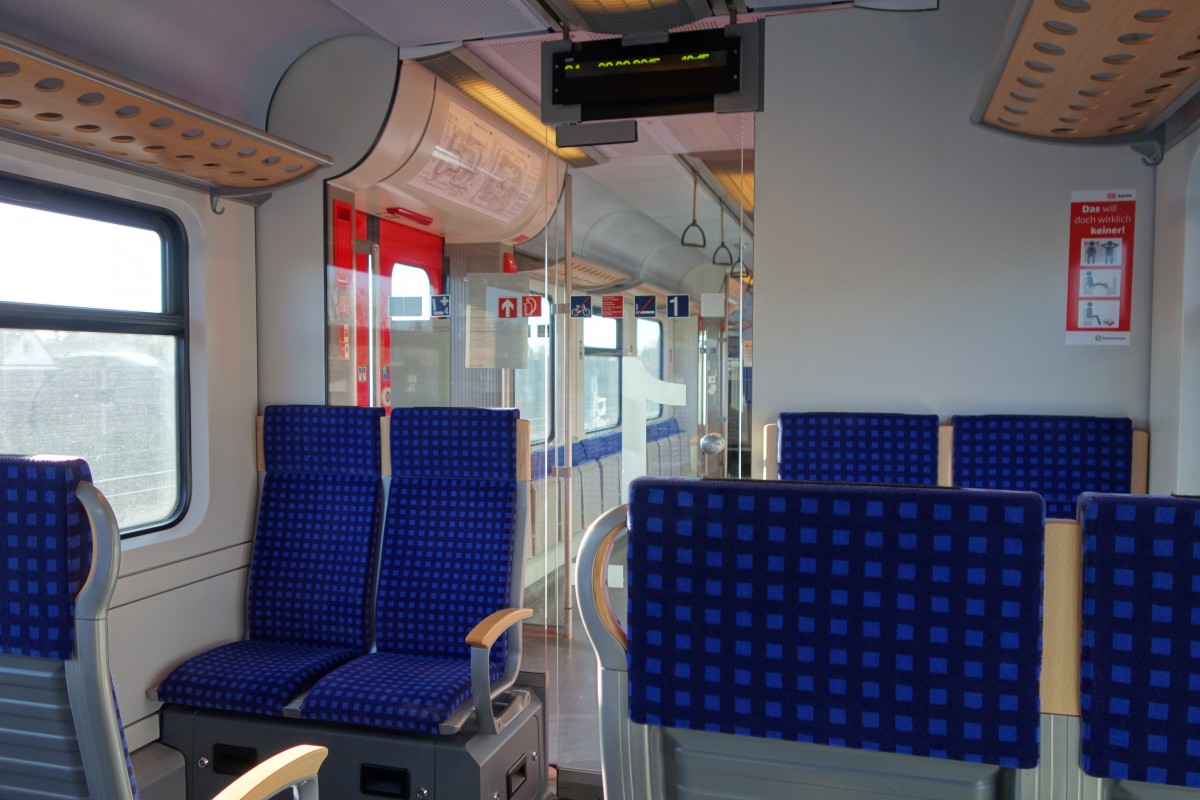 Blick in die 1.Klasse eines ET 425 der S-Bahn Hannover, im Februar 2015 auf der S4 nach Hannover Hbf unterwegs.