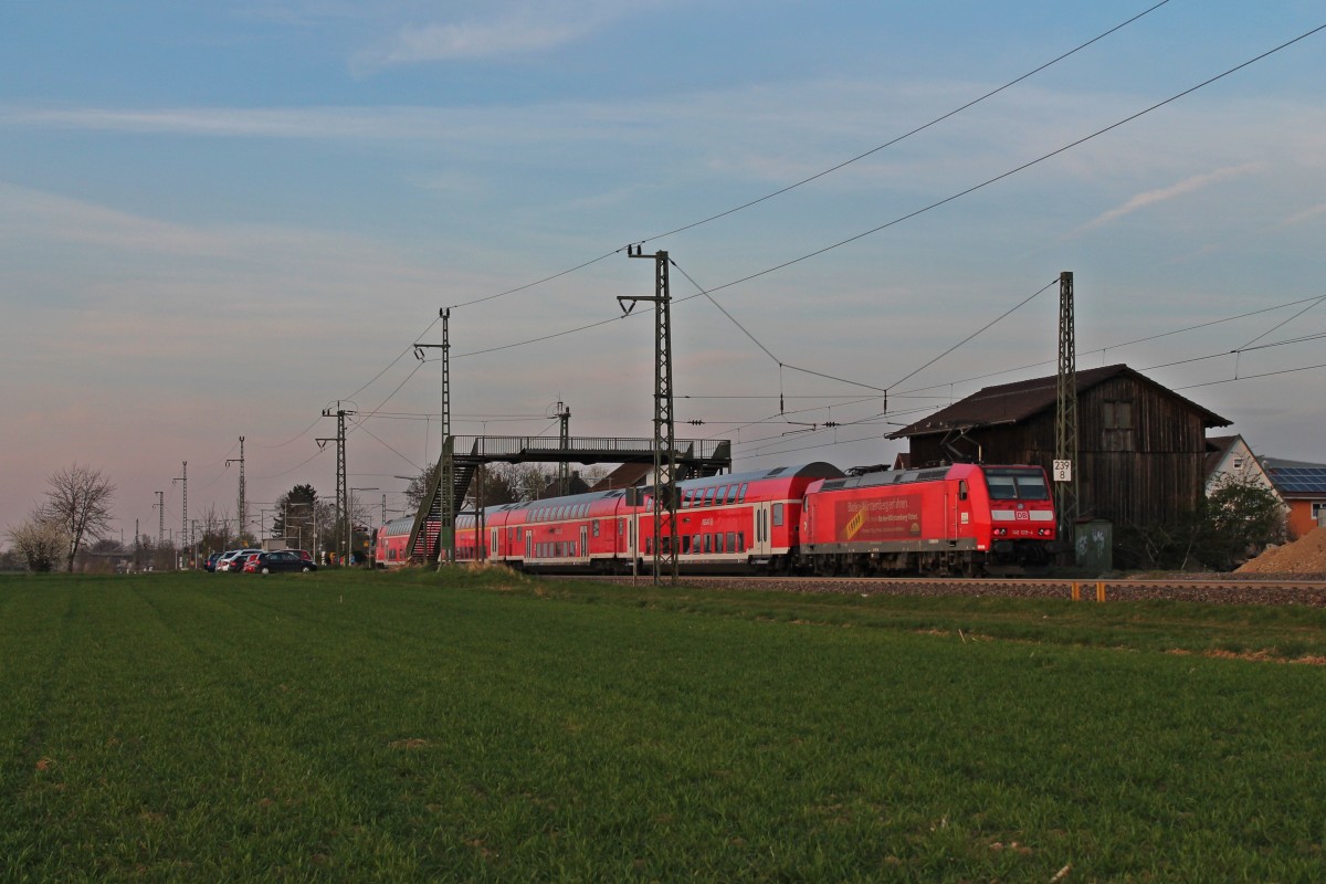 Durchfahrt am 29.03.2014 von 403 558-0 "St.Ingbert" zusammen mit 403 522-6 "Solingen" als ICE 109 (Dortmund Hbf - Basel SBB) im Hp Auggen seinem Ziel entgegen.