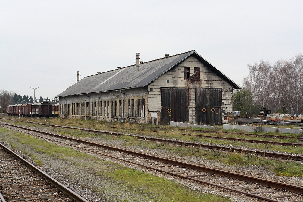 Lokschuppen der ehemaligen Zugförderungsstelle Mistelbach am 22.November 2014.
