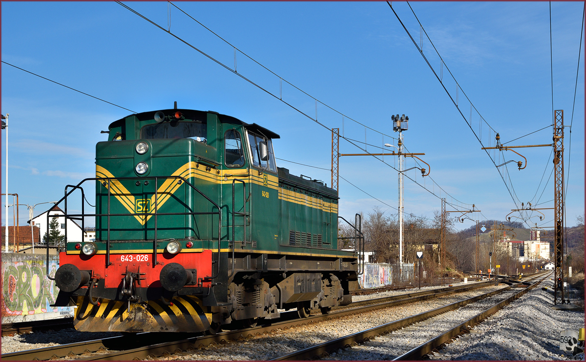 SŽ 643-028 fährt als Lokzug durch Maribor-Tabor Richtung Maribor HBF. /14.1.2015
