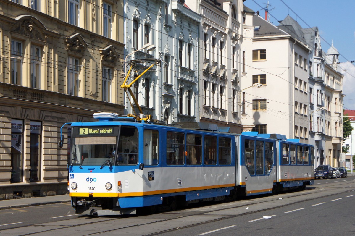 Tschechische Republik / Straßenbahn Ostrava: Tatra KT8D5.RN1 - Wagennummer 1501 ...aufgenommen im Juni 2014 in der Nähe vom Bahnhof (Straßenname: Nádražní) von Ostrava.