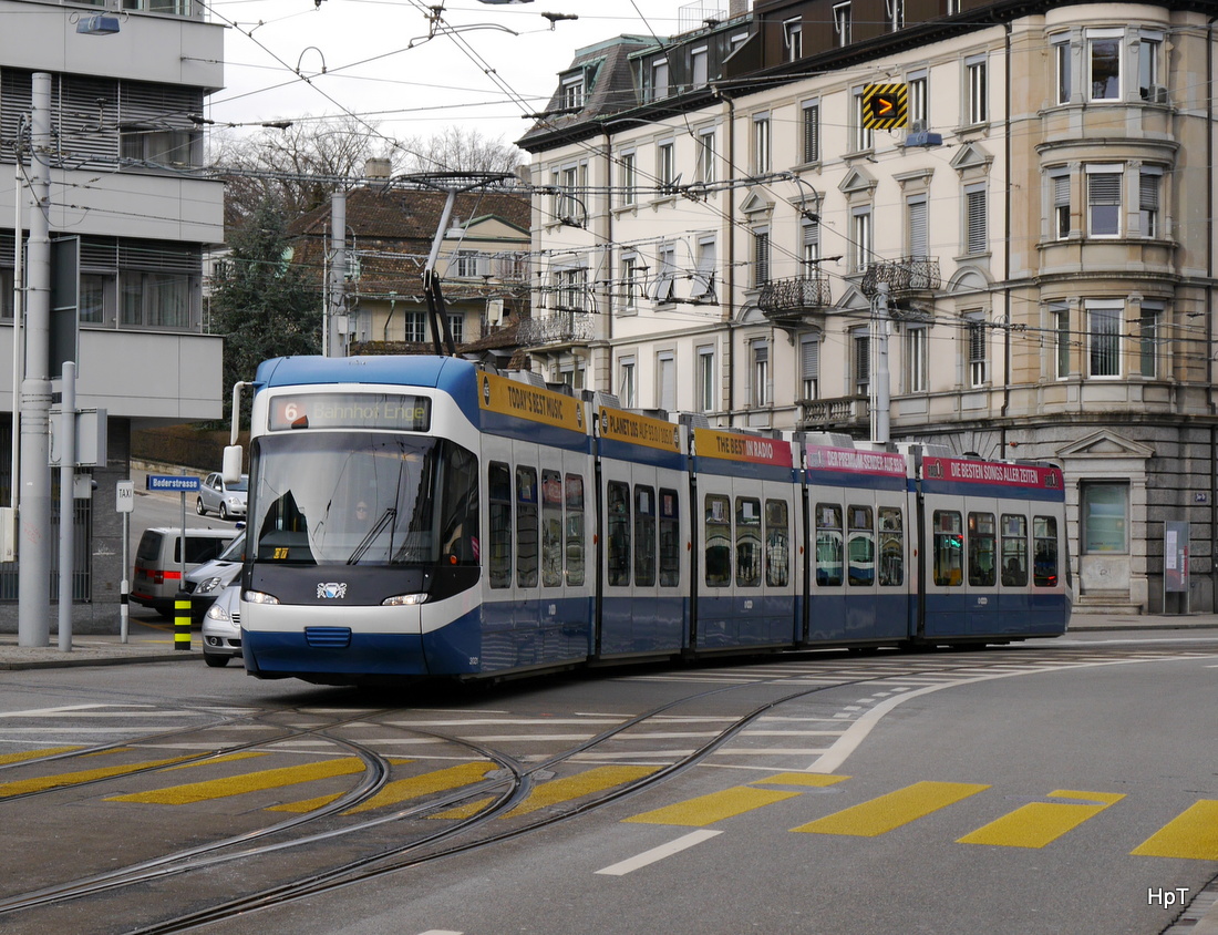 VBZ - Tram Be 5/6 3021 unterwegs auf der Linie 6 in Zürich am 31.01.2015