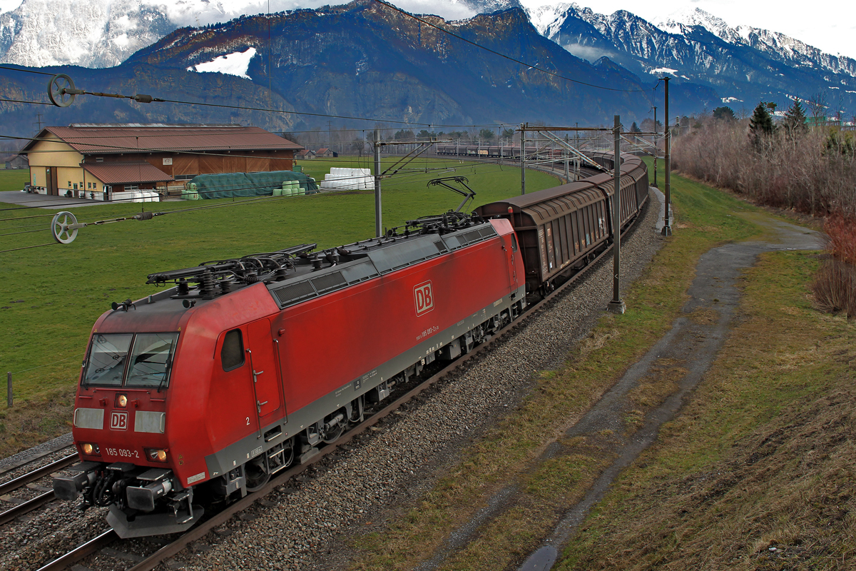 185 093-2 mit dem Red Bull Zug bei Sargans.Bild 2.2.2015