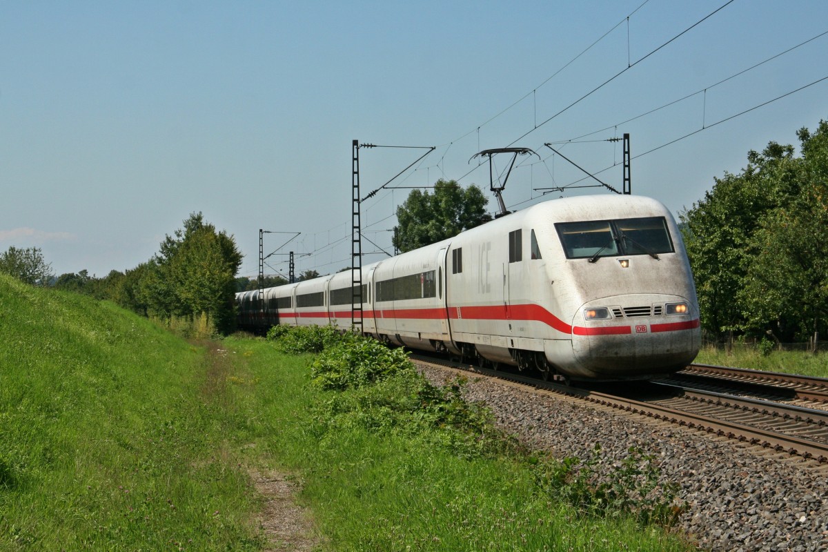401 004-7 als verspäteter ICE 279 von Berlin Ostbahnhof nach Basel SBB am Nachmittag des 01.08.14 nördlich von Kollmarsreute.