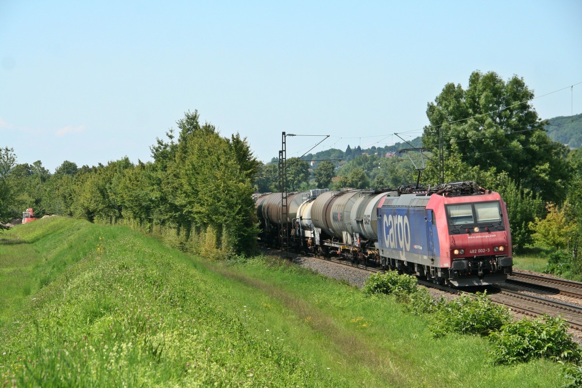 482 002-3 mit dem 49069 von Ludwigshafen BASF/Karlsruhe Gbf nach Basel SBB Rbf am Nachmittag des 01.08.14 nördlich von Kollmarsreute.